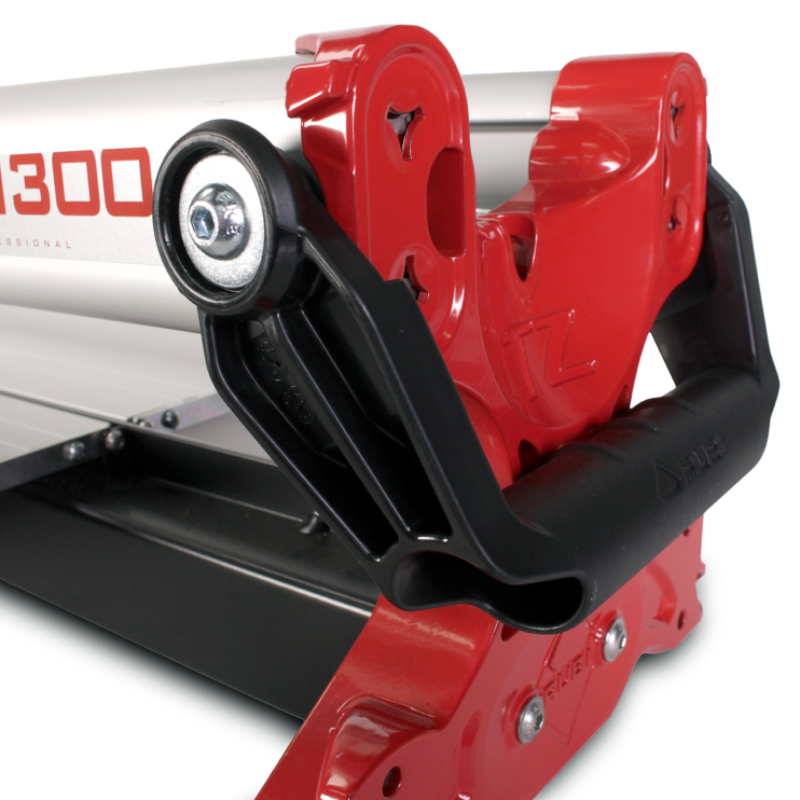 Ръчната машина за рязане на плочки RUBI TZ-1300 е професионално решение, създадено специално за работа с керамични плочи с големи формати. С впечатляваща дължина на рязане от 1300 мм и изключително висока сила на разчупване, моделът осигурява прецизност, контрол и ефективност дори при трудни и плътни материали. Конструкцията на водещите шини гарантира плавно движение на режещия блок, което позволява чисто и точно маркиране без отклонения.