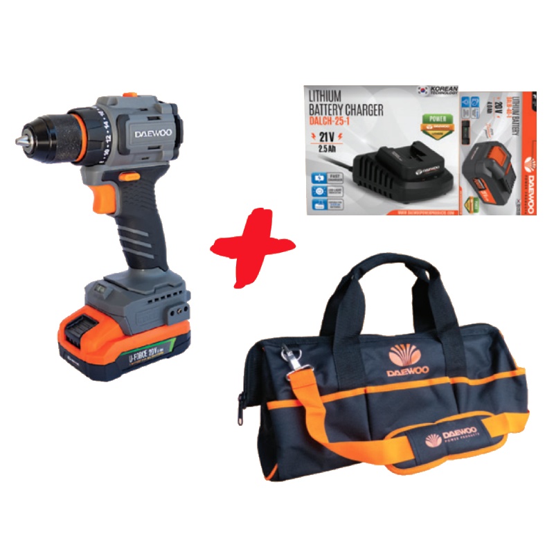 Моделът е съвместим с универсалните 20 V Li-ion батерии от серията U-FORCE, което позволява използване с останалите инструменти от платформата. Комплектът включва винтоверт DAEWOO DALIDBL20-50, текстилна чанта DAEWOO DANB20 за удобно съхранение и транспортиране, както и стартов комплект акумулаторна батерия и зарядно устройство.