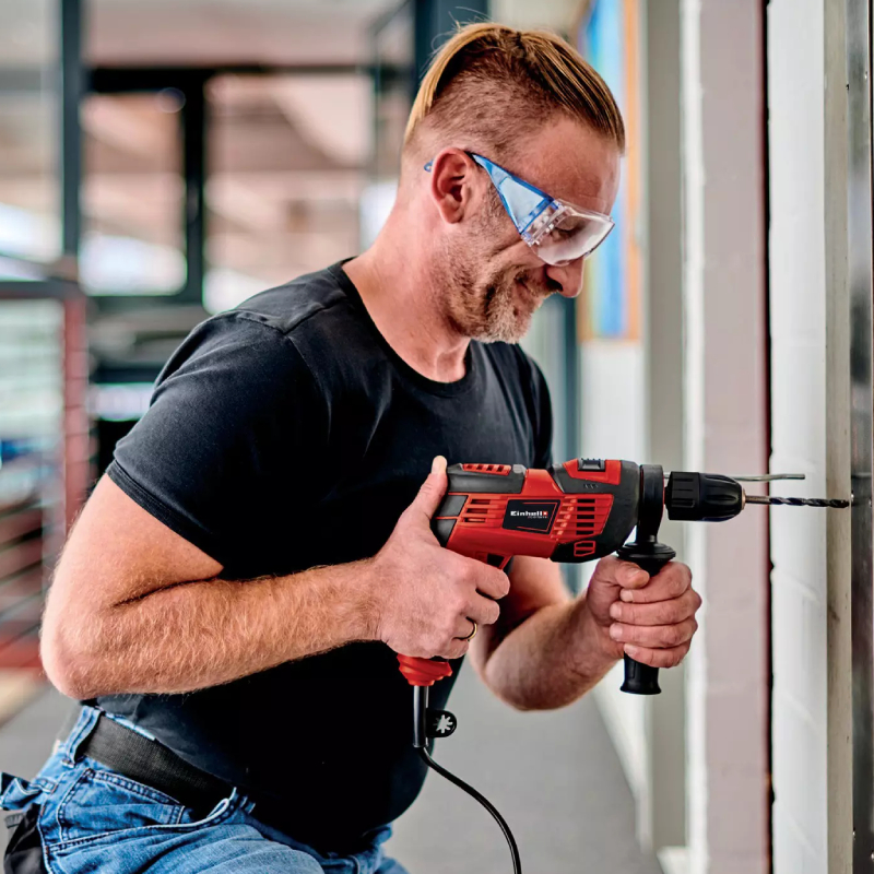 Einhell TC-ID 720/1 E е мощна ударна бормашина, предназначена за пробиване и ударно пробиване в различни материали като дърво, метал и бетон. Със своя мотор с мощност 720 W и максимална честота до 44 800 удара в минута, инструментът осигурява стабилна производителност при домашни и ремонтни дейности. Подходяща е за пробиване до 30 мм в дърво, 13 мм в бетон и 10 мм в метал.