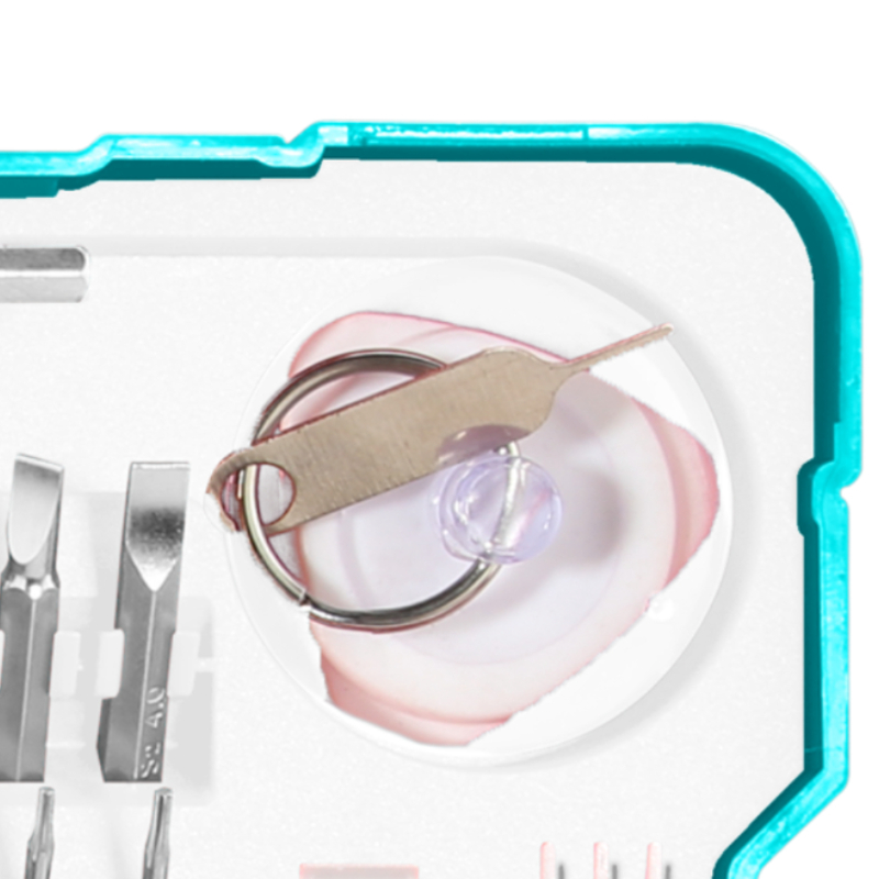 - Специализирани инструменти: 2 пластмасови лоста, 1 триъгълник, 1 вендуза, 1 шифт
