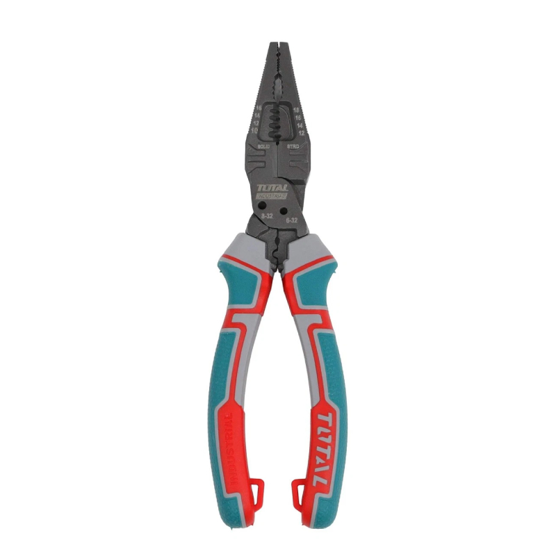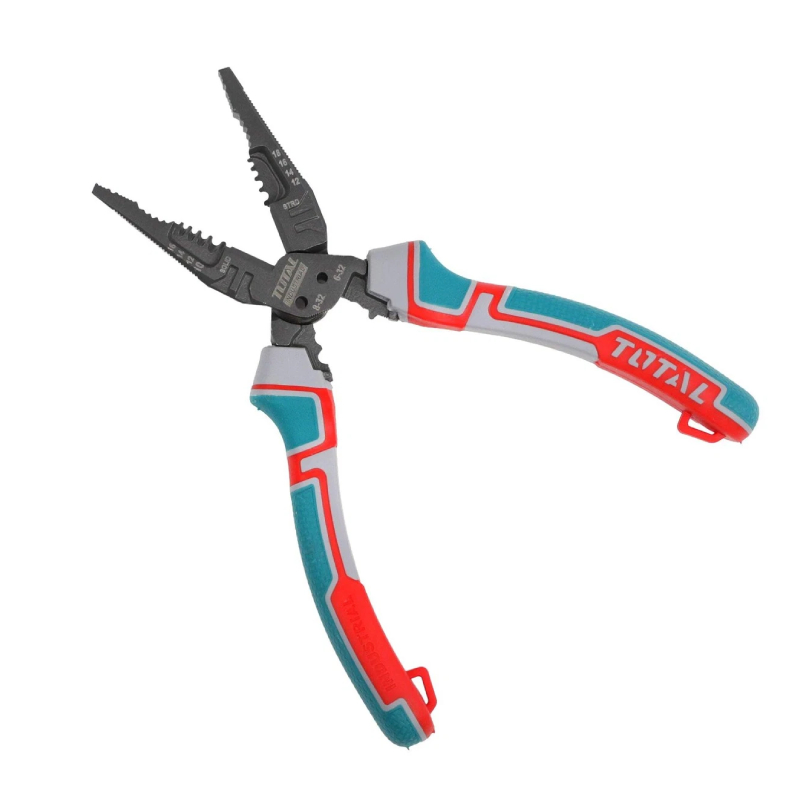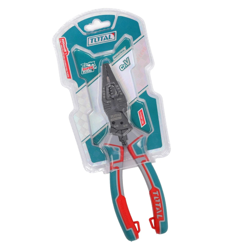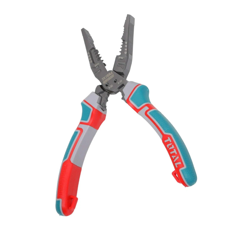 Мултифункционалните комбинирани клещи 8-в-1 TOTAL са професионален инструмент, предназначен за електротехници, монтажници и домашни майстори. Създадени са така, че един инструмент да замести няколко отделни, като позволяват извършването на рязане, зачистване на кабели, кримпване, рязане на винтове, използване като гаечен ключ, държане на пирони, почистване на ръбове и издърпване на кабели. Това ги прави незаменими при монтажни, ремонтни и електротехнически задачи, особено когато се работи в ограничени пространства.