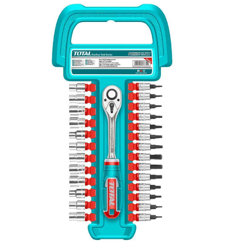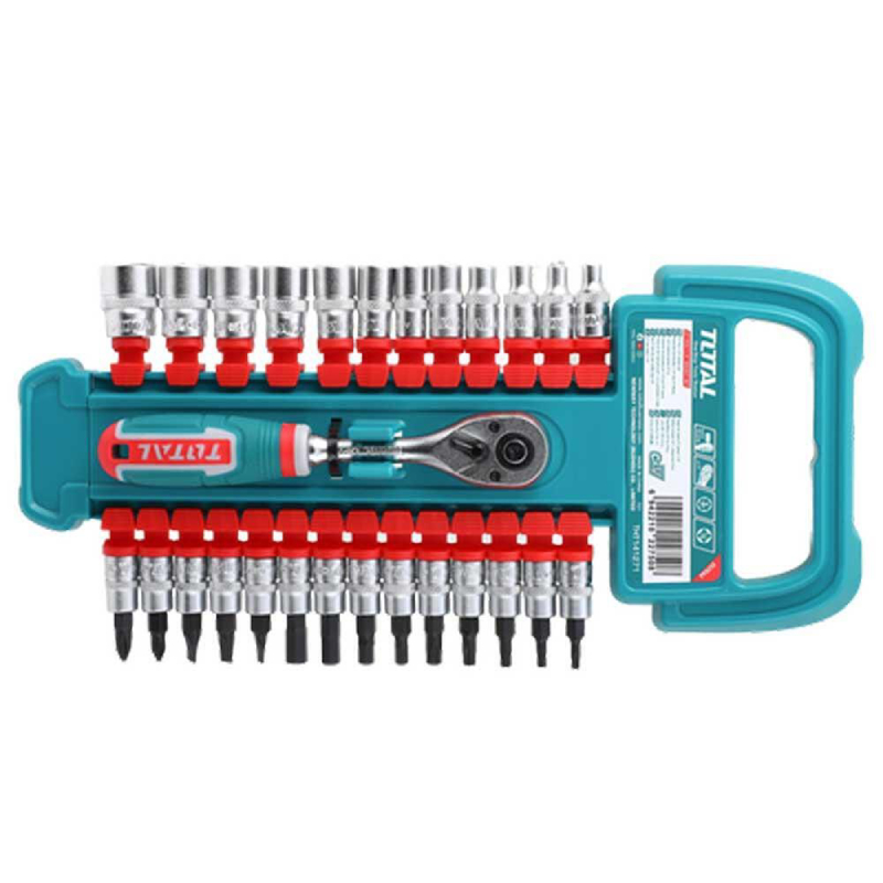 Комплектът тресчотка с вложки и битове TOTAL THT141271 от серията Industrial е практичен и универсален инструментален набор, предназначен за монтажни, сервизни и ремонтни дейности. Съдържа внимателно подбрани вложки и битове, които позволяват работа с широка гама от болтове, гайки и крепежни елементи, което го прави подходящ както за професионална употреба в автосервизи и работилници, така и за домашни ремонти.