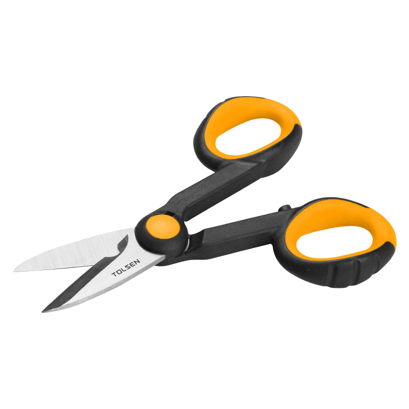 Ножиците електричарски TOLSEN 140 мм са специализиран инструмент, предназначен за прецизно рязане, зачистване и захващане на електрически кабели и проводници. Остриетата са изработени от висококачествена неръждаема стомана с микро назъбване, което осигурява стабилно захващане на кабела и предотвратява приплъзване по време на рязане. Вдлъбнатината на долната част на остриетата позволява лесно зачистване на изолацията и прецизно захващане на проводниците без повреди.