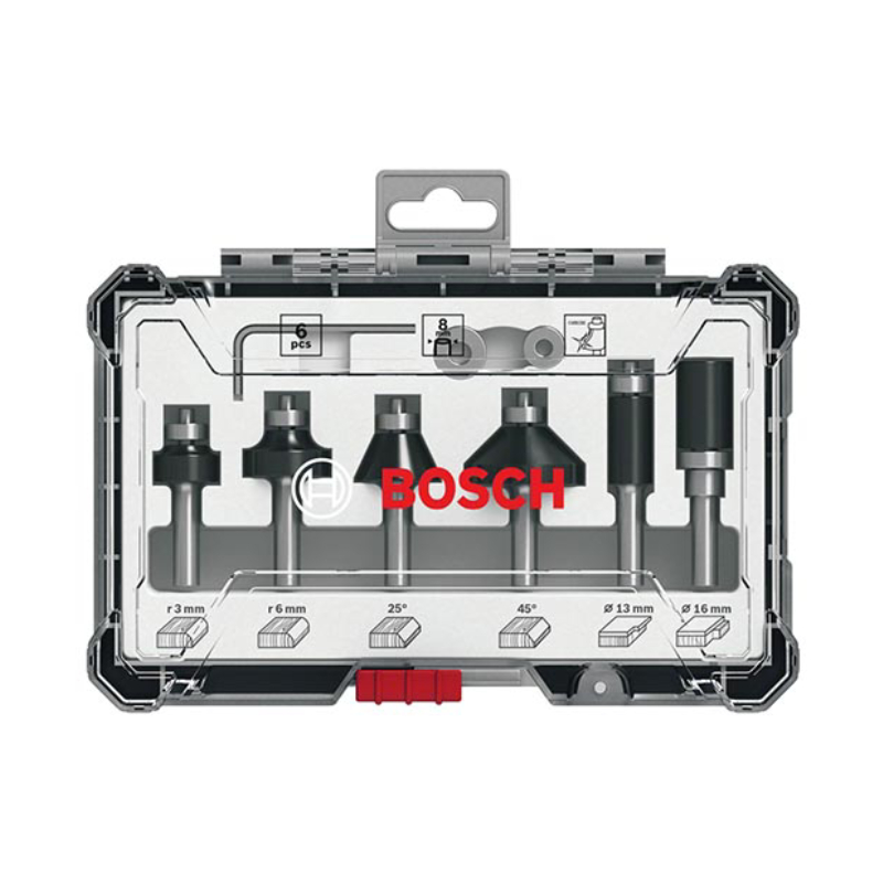 Комплектът твърдосплавни фрезери BOSCH 2607017469 включва 6 броя фрезери за оберфреза, предназначени за работа върху ръбове, закръгляване, скосяване и подравняване на различни дървени повърхности. Карбидните режещи ръбове гарантират дълъг живот на инструмента и осигуряват прецизни срезове дори при интензивна употреба.