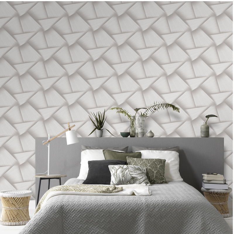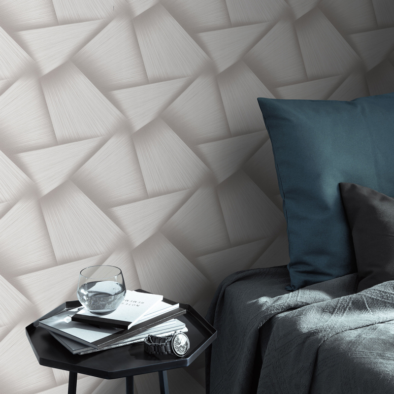 Елегантен триизмерен тапет с графичен мотив, който създава впечатляваща визия на преплетени геометрични форми. Фините светлосенки оформят модерен 3D ефект, придавайки дълбочина и динамика на стената. Комбинацията от бежови и сиви нюанси прави дизайна универсален и лесен за съчетаване с различни интериорни стилове.