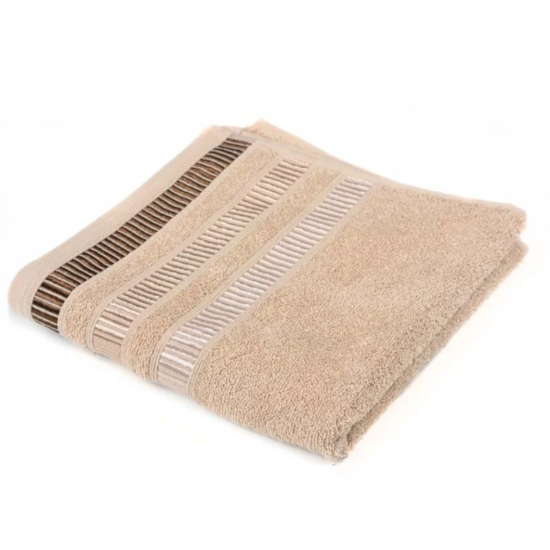 С размери 30 x 50 см и плътност 450 гр/м², кърпата предлага перфектен баланс между комфорт и издръжливост. Елегантният цвят, допълнен от красив жакардов бордюр, придава завършен и стилен вид.