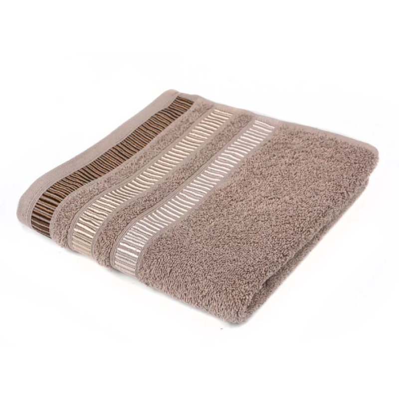 С размери 70 x 140 см и плътност 450 гр/м², кърпата предлага перфектен баланс между комфорт и издръжливост. Елегантният цвят, допълнен от красив жакардов бордюр, придава завършен и стилен вид.