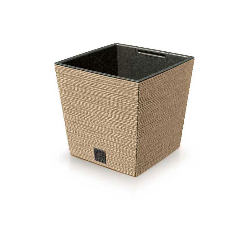 Изработена от висококачествена пластмаса с добавка на естествено дърво, саксията е устойчива на UV лъчи и променливи атмосферни условия, което гарантира дълготрайна употреба. Включената практична вложка улеснява засаждането и поддръжката на растенията, като същевременно оптимизира използването на почва и вода.