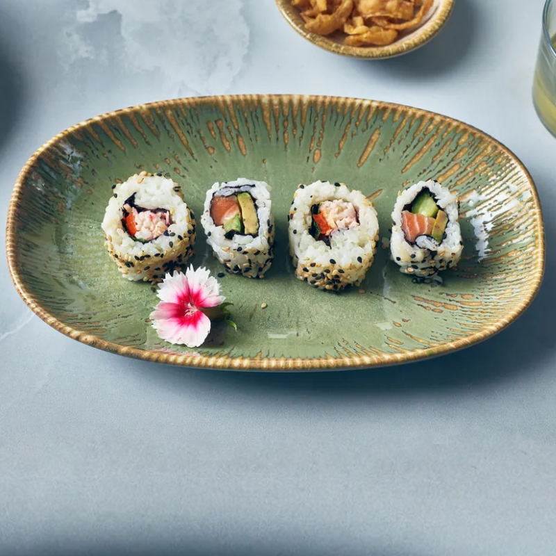 Изработено от висококачествен премиум порцелан, платото съчетава здравина и функционалност, като е подходящо както за домашна употреба, така и за професионална среда. По-големият размер позволява по-широко приложение при сервиране и презентация.