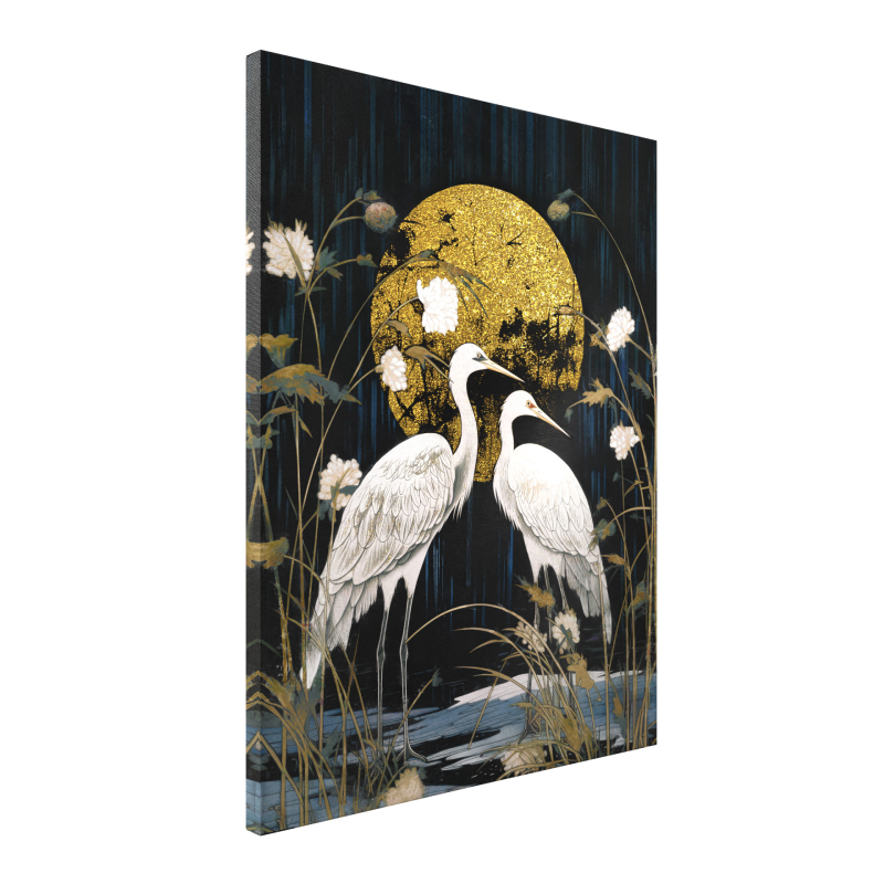 Картина за стена Moon ST736 е впечатляващо декоративно пано, което съчетава природна символика и модерно изкуство. Композицията представя две големи бели птици, разположени пред луната, което създава усещане за спокойствие, хармония и лека мистичност. Контрастът между светлата луна и силуетите на птиците придава дълбочина и визуална динамика на изображението.