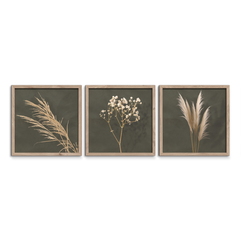 Комплектът картини FR391 "Pampas" е стилно решение за декорация на стените в съвременния дом. Нежният растителен мотив с пампас трева създава спокойна и хармонична атмосфера, която лесно се вписва в модерни, минималистични и скандинавски интериори.