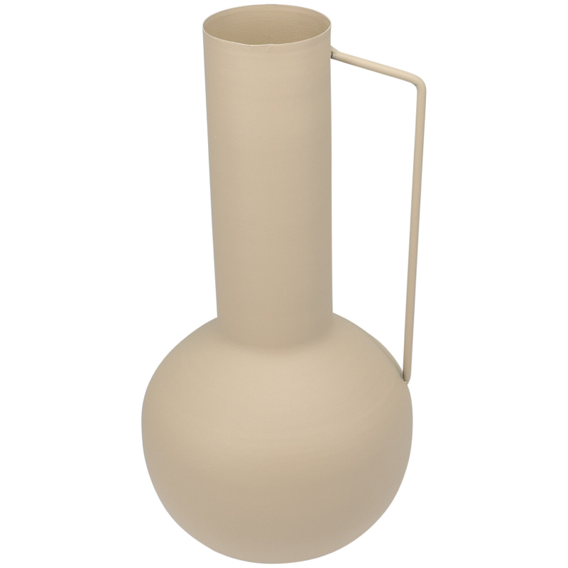 Изработена от здрав метал, вазата е устойчива и същевременно лека, което я прави удобна за преместване и подреждане в различни пространства. Благодарение на неутралния си бежов цвят тя се комбинира лесно с разнообразни цветови палитри и стилове на обзавеждане.