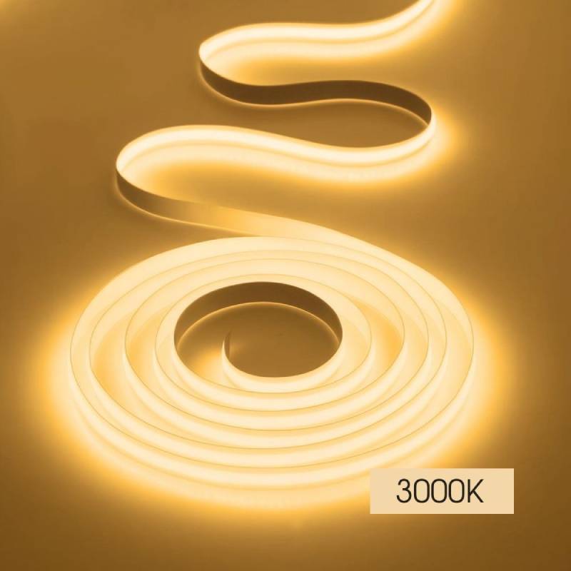 Лентата комбинира предимствата на съвременните LED решения, като гарантира плавно и хомогенно разпределение на светлината. Предлага се в различни цветни температури, като този вариант излъчва топло-бяла светлина (3000 K), създаваща уютна и приятна атмосфера. Възможността за димиране позволява лесно регулиране на интензитета според нуждите.