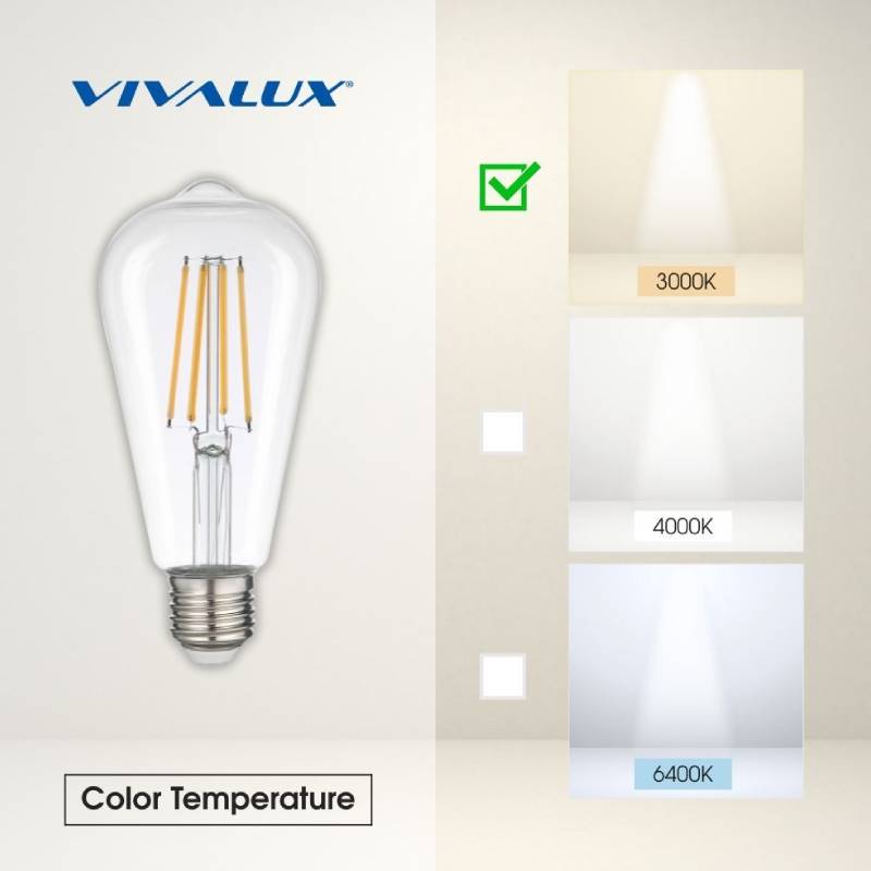 Крушката е с прозрачен корпус и излъчва топло-бяла светлина (3000 K), която създава приятна и комфортна обстановка. Въпреки ретро визията си, тя предлага висока яркост и ниска консумация на енергия.