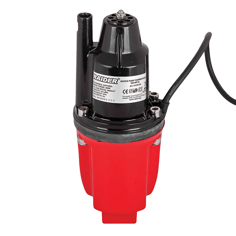 Потопяема водна помпа за чиста вода RD-WP18 на марката RAIDER. Помпата е с мощност 300 W и максимален дебит 18 л/мин. Подходяща е за напояване на тревни площи като овощни градини и лехи. Високоефективна е при изсмукване на чиста вода от кладенци, резервоари, мазета, килери, плувни басейни и др.