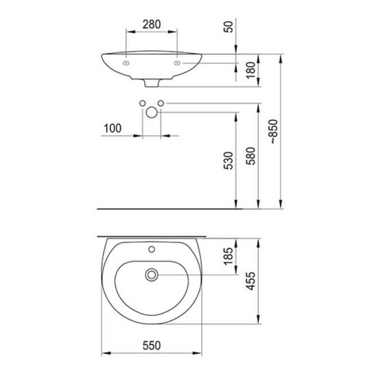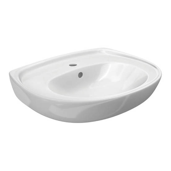 Бяла керамична мивка от серия Mira FAYANS. Мивката за баня е с размери 55 см. Монтира се изключително лесно към стената. Предлага изчистен и класически дизайн. Разполага с централен отвор за стоящ смесител, който е със стандартен размер Ф35 мм.