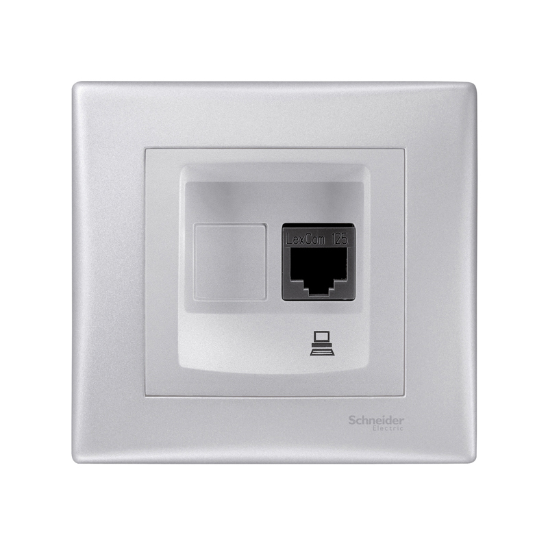 Компютърна розетка Schneider Еlectric RJ45 за вграждане от серията Sedna със защита IP20. Цвят: алуминий. Продуктов код: SDN4300260.