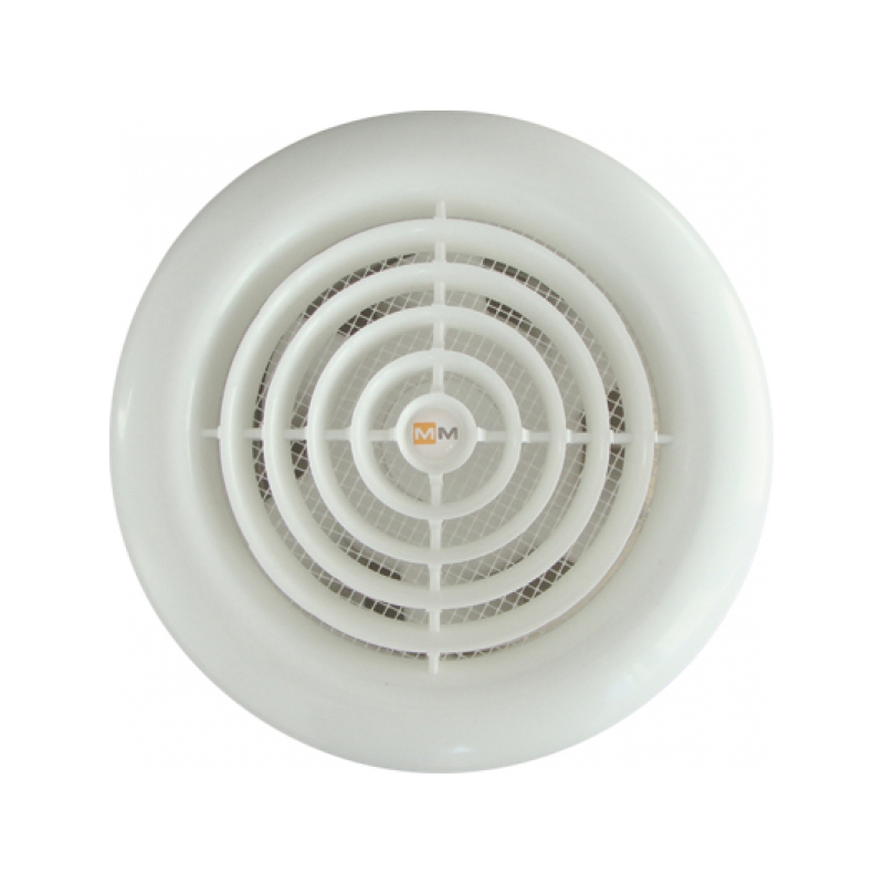 Кръгъл вентилатор MMOTORS MM100, подходящ за продължителна или прекъсната работа в малки или средни битови, санитарни и търговски помещения; за монтаж на стена таван или окачен таван, може да се използва като топлообменник между съседни помещения, с търкалящ двойнокапсулован лагер, гарантиращ 30000 часа работа.
