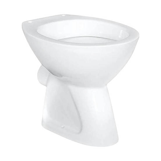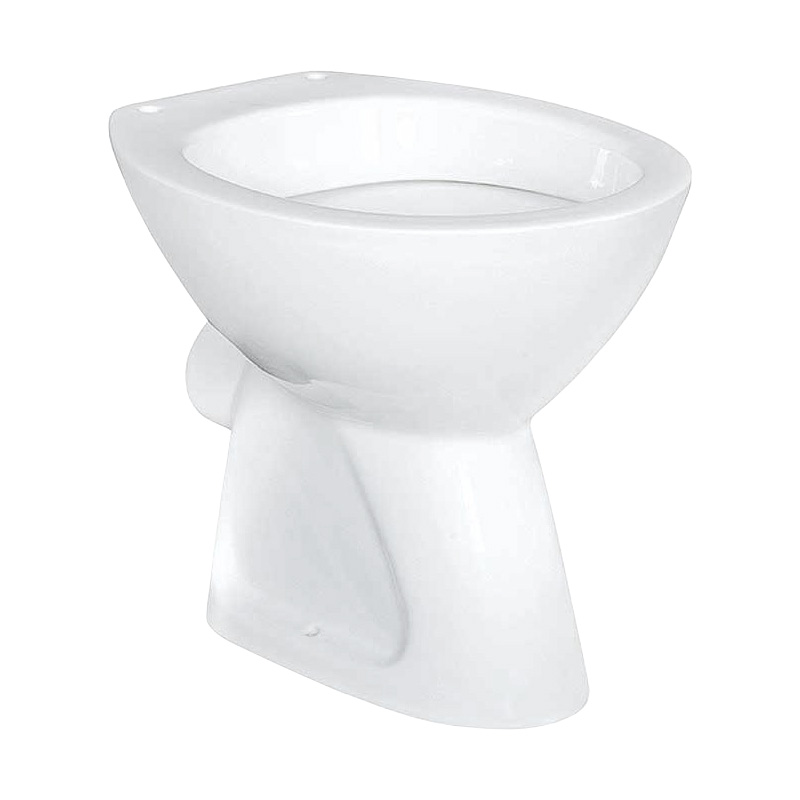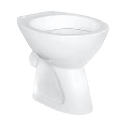 Стоящата порцеланова тоалетна чиния се предлага без седалка за тоалетна чиния.