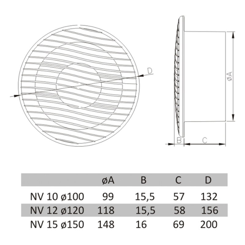 Вентилатор DOSPEL NV15, подходящ за продължителна или прекъсната работа в малки или средни битови, санитарни и търговски помещения; за монтаж на стена таван или окачен таван, може да се използва като топлообменник между съседни помещения.