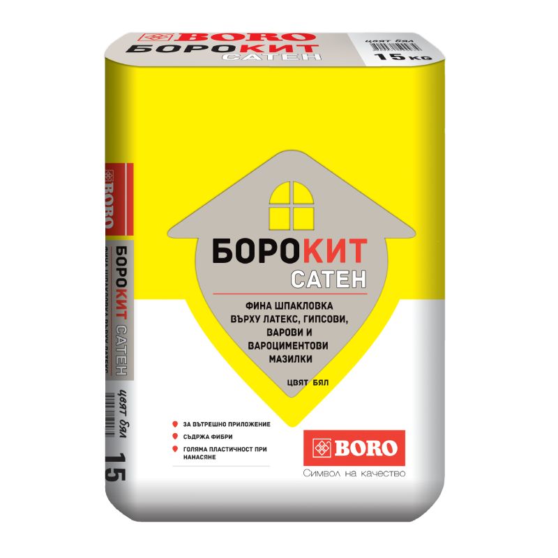 Гипсова шпакловка БОРОКИТ на базата на хидратна вар и фин минерален пълнител. Подходяща е за фино шпакловане на гипсови мазилки, шпакловки, гипсфазер, гипсокартон и гладък бетон. За заравняване на стари, груби латексни покрития. Разфасовка: 15 кг.