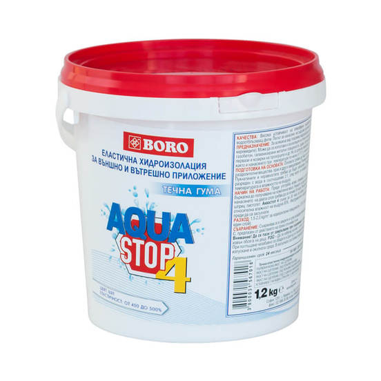 За постигане на най-добър резултат е важно основата да бъде добре почистена и обезпрашена, без наличие на мазни петна или замърсители. При необходимост Аквастоп 4 може да се разреди с вода в съотношение 2:1. Съхнението при стандартни условия от 20°С и 65% относителна влажност е около 24 часа. След изсъхване материалът образува плътен, водонепропусклив слой, който предотвратява проникването на влага дори в силно натоварени участъци.
