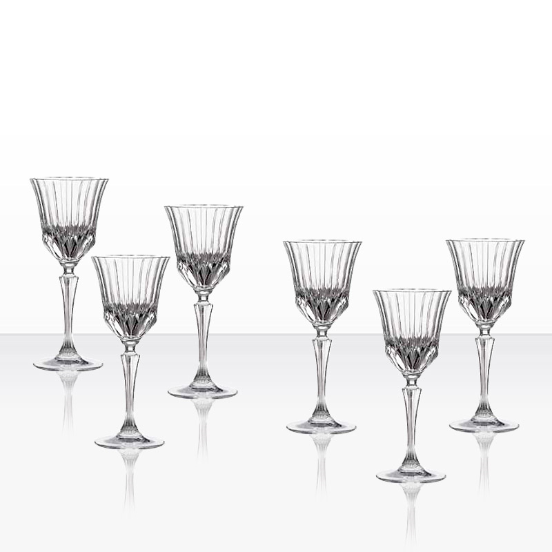Комплект кристални чаши за бяло вино от серията Adagio на марката DA VINCI CRYSTAL. Комплектът съдържа 6 броя чаши с размери 206 x 87мм и височина на столчето 80мм. Чашите са произведени от висококачествено стъкло. Могат да се мият в съдомиялна машина, без да се повреждат и надраскват.
