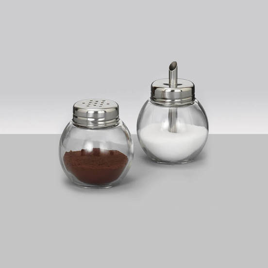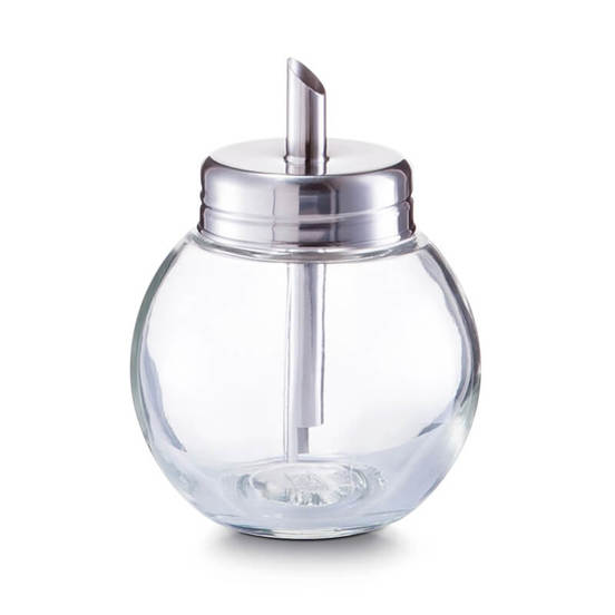 Захарница с дозатор на марката ZELLER. Има сферична форма и е изработена от висококачествени материали: стъкло и неръждаема стомана. Захарницата е с диаметър ф8.5см и височина 11.7см. Дозаторът предоставя голямо удобство при ползването на кухненския съд.