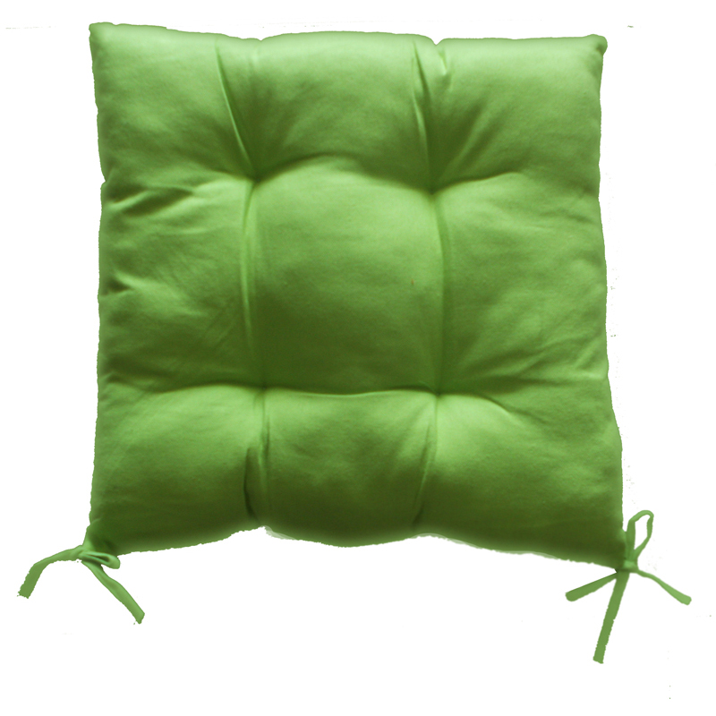 Възглавница за стол в зелен цвят. Възглавницата е с размери 45 х 45см и дебелина 8см. Пълнежът на текстилното изделие е от силиконови влакна, а лицевата част е от памук.