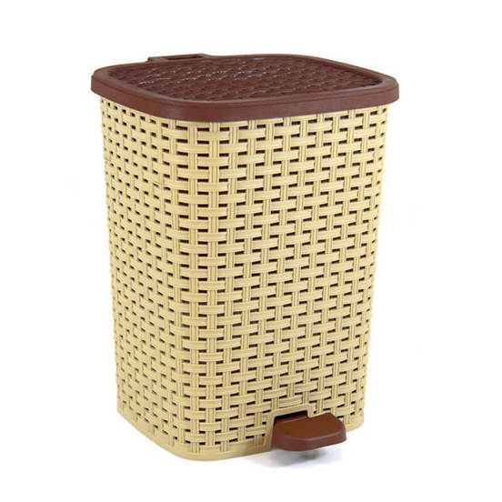 Кош за отпадъци на марката DUNYA. Изработен от висококачествена пластмаса с имитация на ратан. Кошът е с вместимост 26 литра и размери 35 х 33 x 43см. Снабден е с педал за повдигане на капака, което гарантира удобство при употребата му.