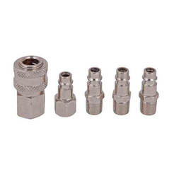 Комплект от 5 броя бързи връзки за пневматика RD QC01 на марката RAIDER. Връзките за пневматични инструменти са с присъединителен размер 1/4".