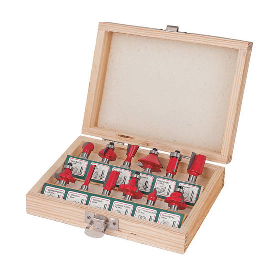 Комплект от 12 броя фрезери RAIDER за оберфреза с размер ф8 мм. Предлагат се в красива и удобна за пренасяне дървена кутия.