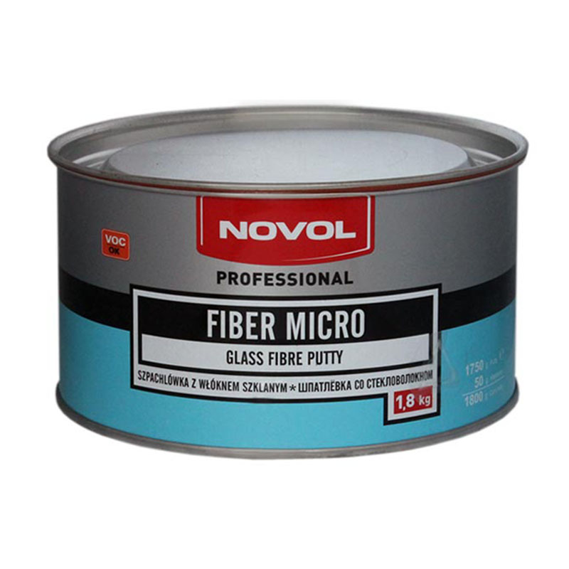 Кит NOVOL Fiber Micro със стъклена вата. Благодарение на полиестерните смоли и стъклените влакна, кита притежава голяма еластичност. Нанася се лесно при големи неравности. Добро сцепление с различни повърхности дори и с поцинкована ламарина. За нанасяне върху полиестерни ламинати, обикновена и галванизирана стомана, алуминий, 2-компонентен акрилен грунд, стара боя.