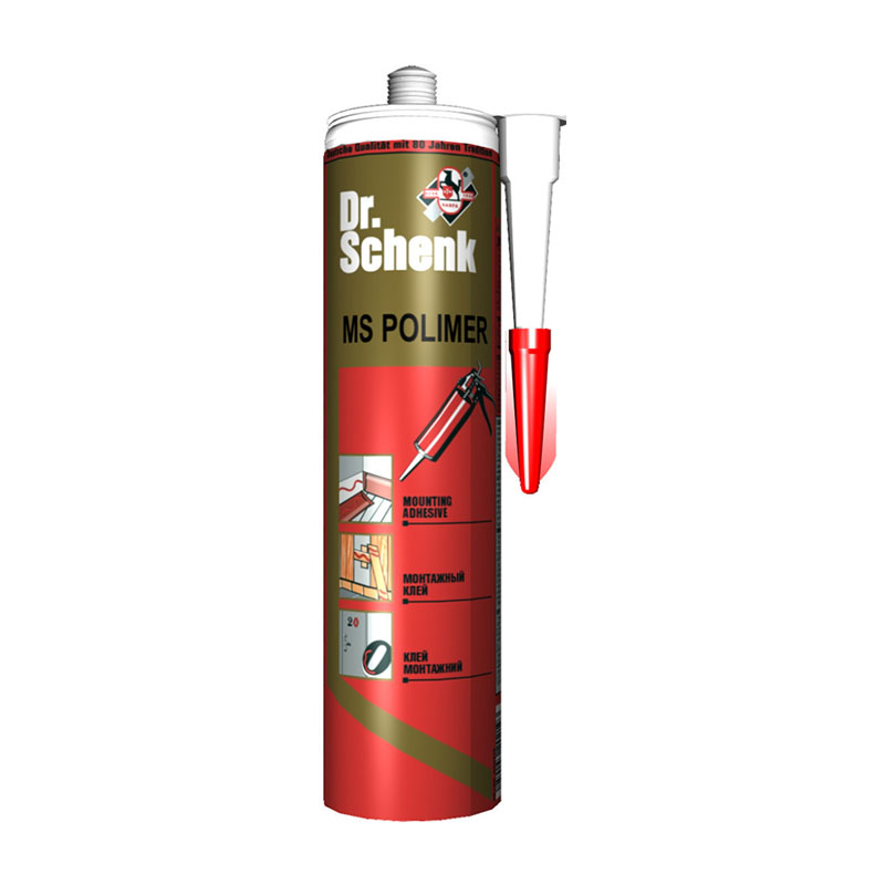 Универсално монтажно лепило на марката DR.SCHENK в цвят бежов. Предназначено е за бърз и дълготраен монтаж и залепяне на различни строителни материали: дърво и дървени елементи, подови первази и лайсни, профили, стенни панели, парапети, гипсови плочи, керамика, стъкло, елементи от твърдо PVC, изолационни материали за бетон, тухли, гипс, мазилка.
