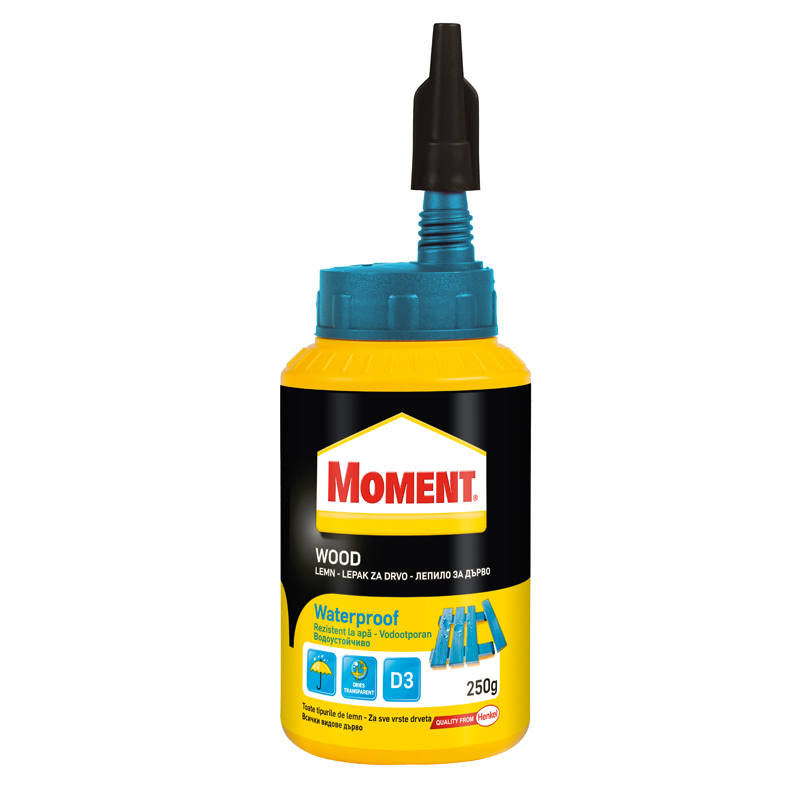 Moment Wood Waterproof е водоусточйчиво лепило за всякакъв вид дърво и дървени материали, които са изложени на висока влажност или за кратко са покрити с вода. Можете да залепите също слама, хартия и картон и да изработвате подаръци и проекти "направи си сам" у дома.