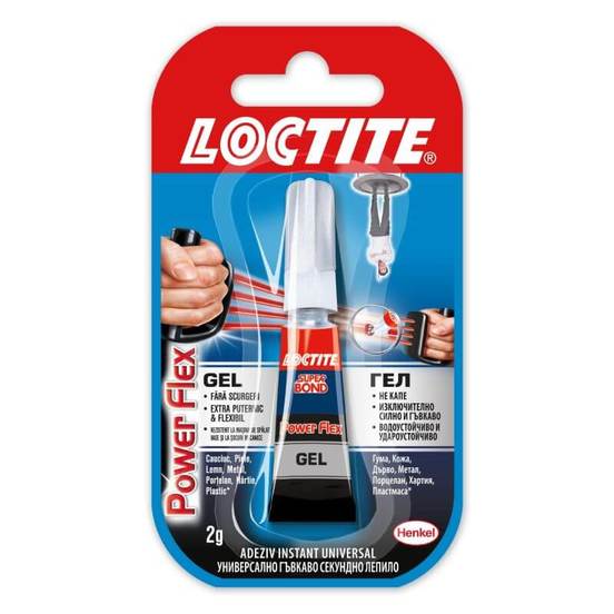 Loctite PowerGel е изключително здраво и гъвкаво секундно лепило подходящо за множество различни материали като дърво, порцелан, метал, кожа, гума, хартия, картон и повечето видове пластмаса. Успешно се използва за лепене на гъвкави и трудни материали, като спортни ластици, градински маркучи, кожени топки и гуми на велосипед. Не се препоръчва за лепене на полиетилен, полипропилен, полистирен, тефлон, тънка кожа, текстил, стъкло и други. Продуктът е водоустойчив и на капе.