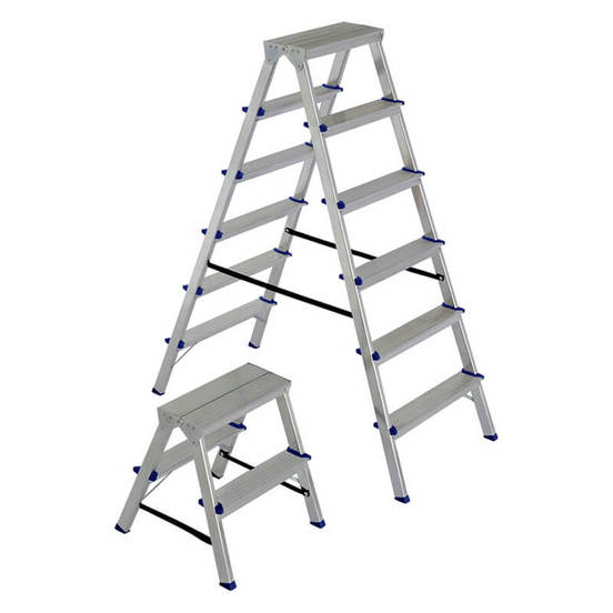 Алуминиевата двураменна стълба ELKOP с 2 х 7 стъпала е предназначена главно за непрофесионална употреба и употреба в домашни условия.