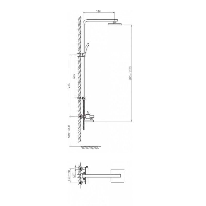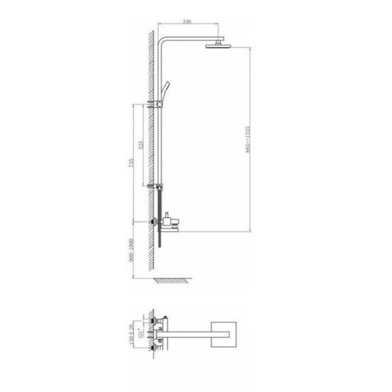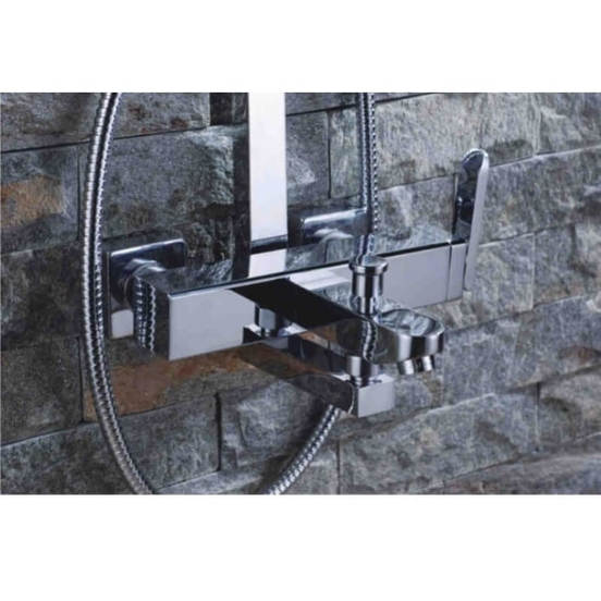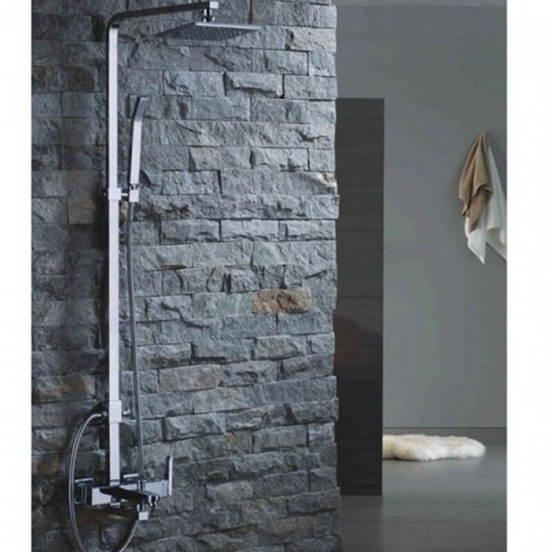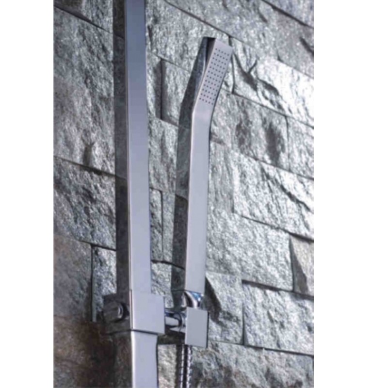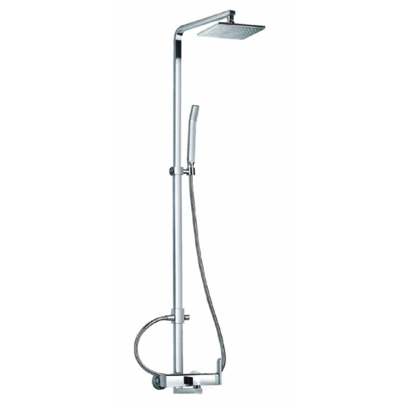 Душ система в комплект с телескопично тръбно окачване и месингов смесител с керамичен затварящ механизъм. Тръбното окачване разполага със стационарна душ пита с размер 20 х 20 см, ръчен душ с 1 функция и шлаух с дължина 1.5м.