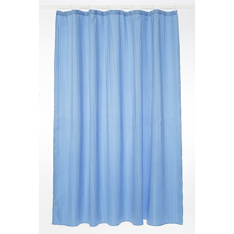 Продуктът представлява завеса за баня, изработена от текстил със специално хидрофобно покритие. Предлата се в комплект с 12 кукички за закачане, а на цвят е синя.