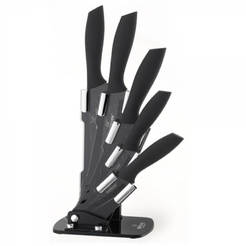 Всички тези видове са включени в нашата номенклатура. Ножовете са изработени от висококачествена неръждаема стомана, която няма алтернатива като най-добър материал. Това е така, благодарение на устойчивостта на стоманата към ръжда и свойството да не се оцветява лесно. Други режещи прибори са изработени с керамични остриета, които са перфектно заточени. Качественото острие почти не се нуждае от допълнително заточване дори и след дълга употреба. Ножовете с керамични остриета не позволяват залепване на храната, която се реже с тях. Недостатъкът на керамичния нож е, че лесно може да бъде одраскан, а драскотините личат отдалеч.