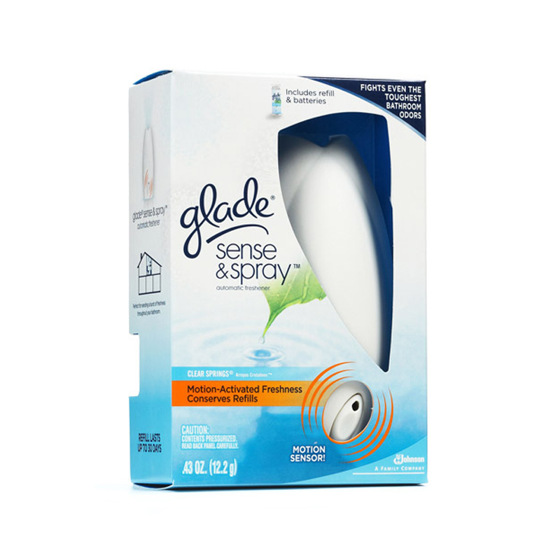 Fragrance brand GLADE in the form of a spray dispenser with motion sensor. With aroma Fresh purity.