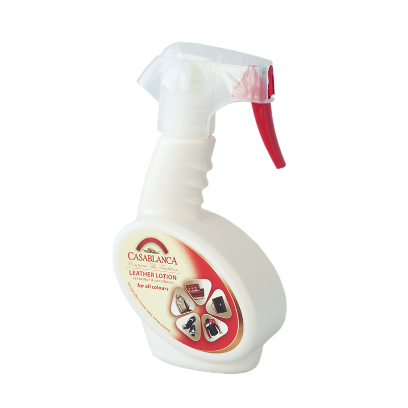 Lotion for leather products of the CASABLANCA brand. Refreshes and softens products from all skin types. Suitable for all colors. Can be used for shoes, bags, furniture, upholstery, clothes.