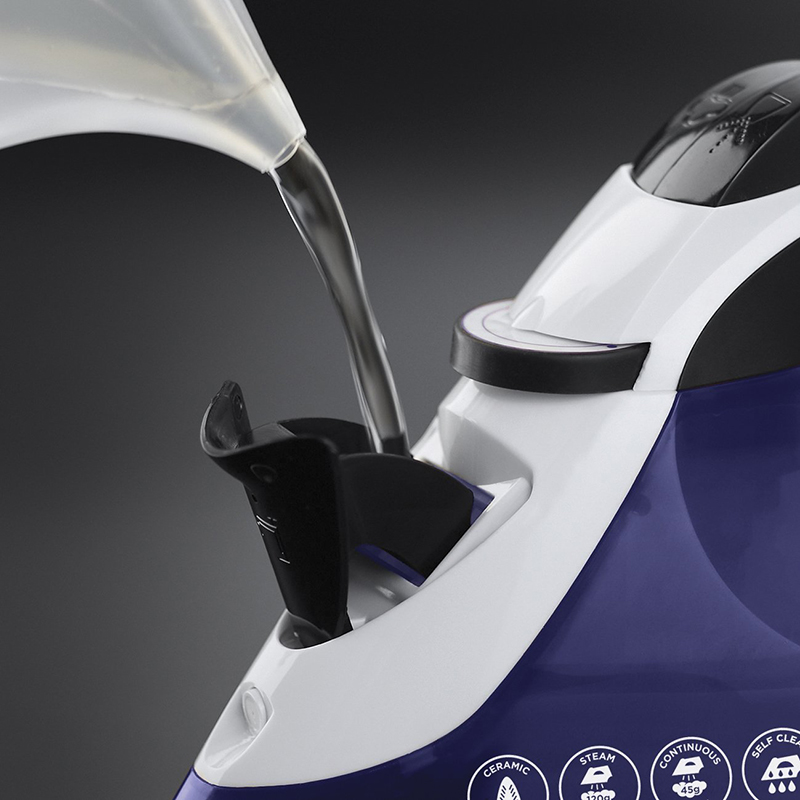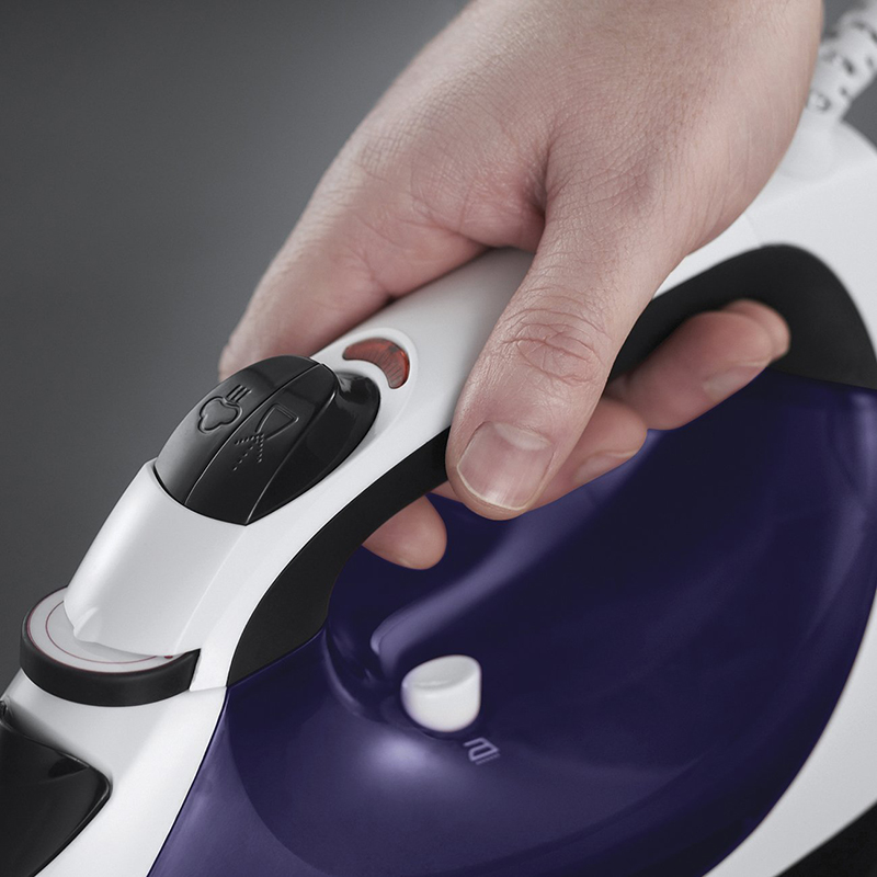 The RUSSELL HOBBS Auto Steam Pro iron automatically generates just as much steam as is needed for the selected temperature. This way you will be able to iron your clothes quickly and efficiently. The iron has a light and ergonomic design. Auto Steam Pro has a power of 2400W and a water tank with a capacity of 320 ml. The cable is 3 meters long.