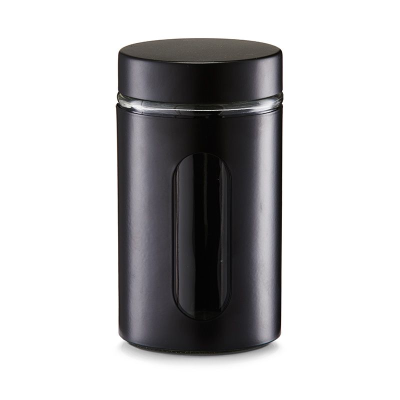 ZELLER storage jar in black color. The kitchen vessel has a capacity of 900 ml. It is made of glass, which is protected by metal cladding. This protects it from easy breakage and further gives it a more stylish look.The jar has a diameter of 102 cm and a height of 18 cm.It is ideal for storing coffee, tea and all kinds of spices.