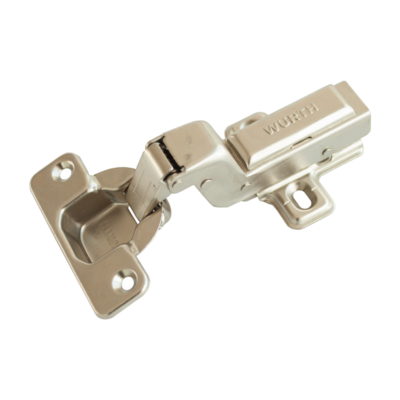 WURTH furniture hinge with high arm (hinge with open edging)and shock absorber for smooth closing. The shock absorber does not need additional adjustments when installing the furniture hinge.