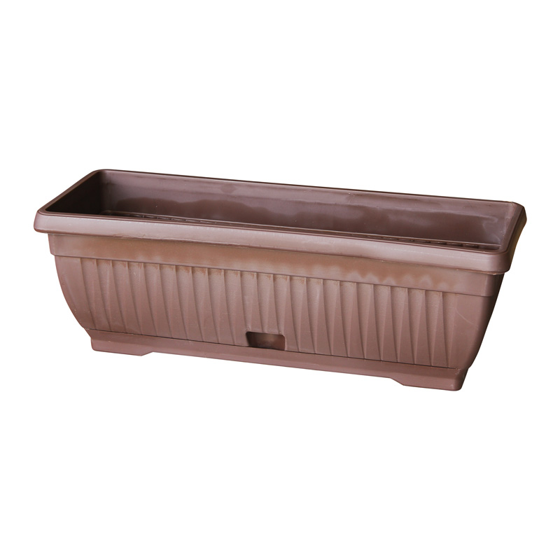 Rectangular garden chest of the BEOROL brand with a length of 50 cm. Made of brown plastic . A pad is included with the plastic flower box.