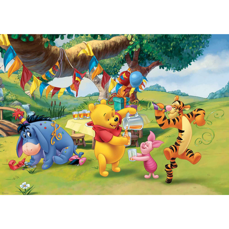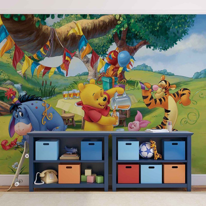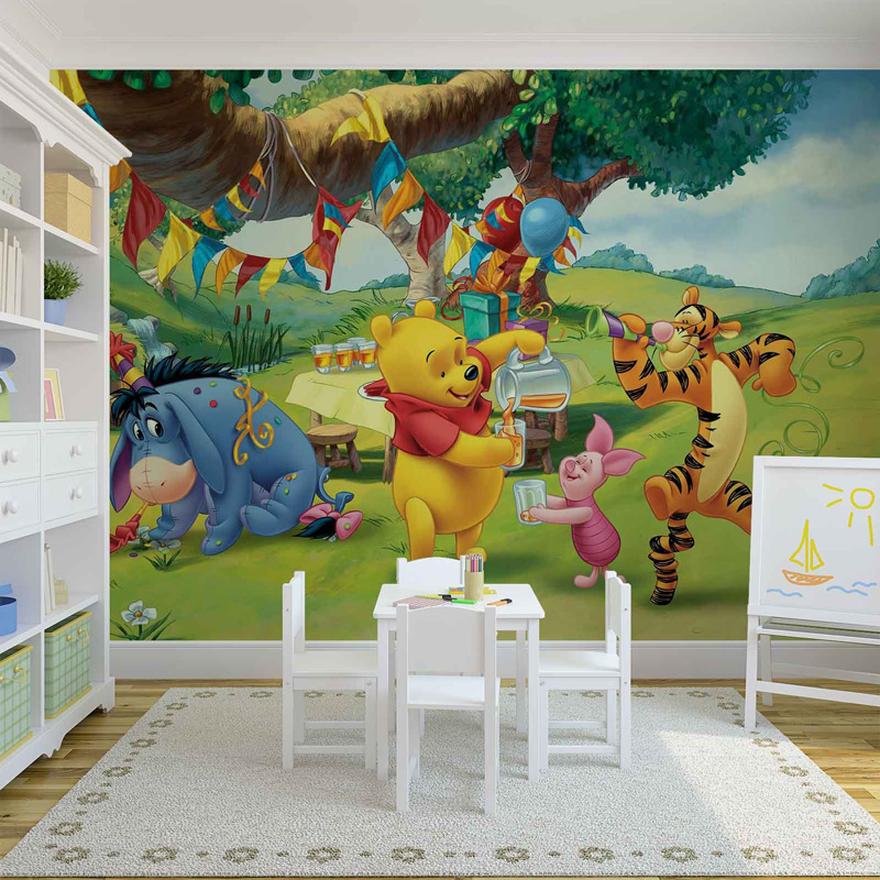 High-quality, wide-format photo wallpaper for a children's room with an image of the characters from the children's movie Winnie the Pooh. Photo wallpaper is suitable for placing the wall in any room that is not exposed to high levels of humidity.