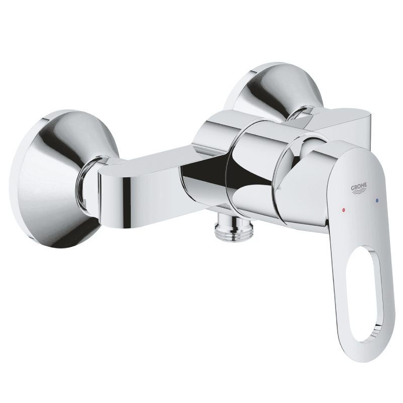 Wandmontierte Brausebatterie aus der Start Loop Serie von GROHE mit 46 mm Keramikkartusche. Die wandmontierte Badarmatur ist ein Einhebelmischer mit Warm- und Kaltwasseranzeige. Sie verfügt über ein Rückschlagventil und einen Luftsprudler, wodurch Sie Wasser sparen. Die im Set enthaltenen Exzenteranschlüsse (S-Anschlüsse) und der standardisierte Abstand von 15 cm ermöglichen eine einfache und präzise Installation. Die langlebige Chromoberfläche garantiert Glanz und einfache Pflege. Ein zusätzlicher Temperaturbegrenzer ist vorhanden.