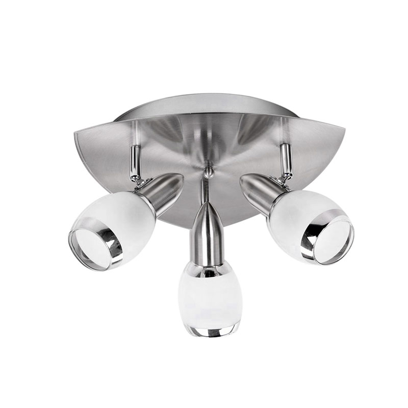 LED Spotlight for indoor use, with power 3x7 W when using LED and energy saving light bulbs. The lamp has a 3xE14 socket. With its stylish, beautiful and modern design, the luminaire with directional light is suitable lighting for a corridor, bedroom, living room, living room, children's room or kitchen. DESONIA's IKEA model is made of chrome metal, with a beautiful frosted glass shell for the lighting part. The Triple Spot has a degree of protection IP20, which does not allow its installation in rooms with high humidity levels. The IKEA II triple directional luminaire has easily movable heads that allow easy light direction. The Triple Spot can be mounted on the ceiling in the room as additional or main lighting. Compatible with LED bulbs, energy saving bulbs and incandescent bulbs. Complies with the EU.