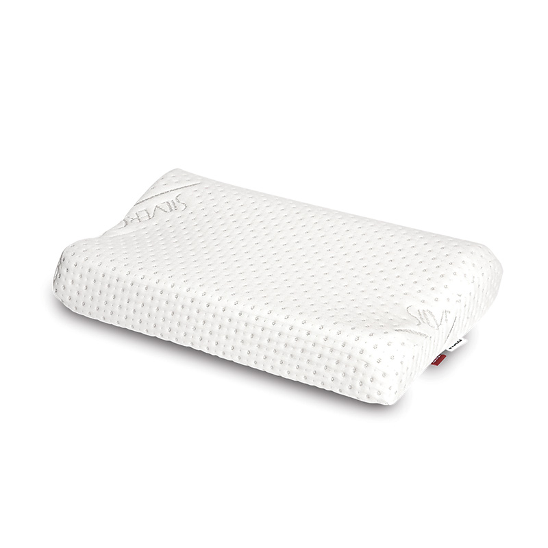 Anatomical sleeping pillow with dimensions 49 x 32 x 12 cm and with a case with silver threads. The Memo Silver Sense anatomical pillow is thermosensitive and anti-allergic.